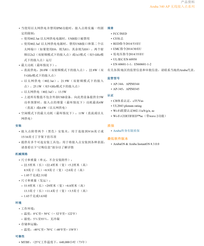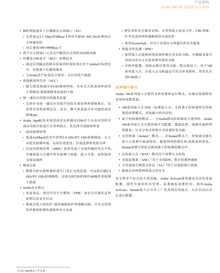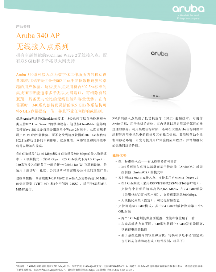 Aruba 510 系列接入點配有 802.11ax (Wi-Fi - 6),結合 Aruba 智能軟件創新技術,專門用于為任何環境下的移動和物聯網設備提供高性能連接。