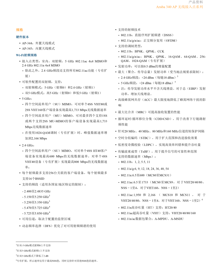 802.11ac:6.5 到 3,467(MCS0 到 MCS9,NSS = 1 到 4,VHT20 到 VHT160)