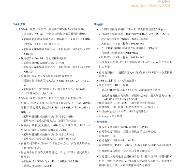 四根集成雙頻段 全向下傾天線,用于 4×4 MIMO,峰會天線增益 2.4GHz 下 4.2dBi 5GHz 下 7.5dBi。內置天線為接入點的水平吊頂 安裝方向進行優化。實現較大增益的下傾角約為 30 度。