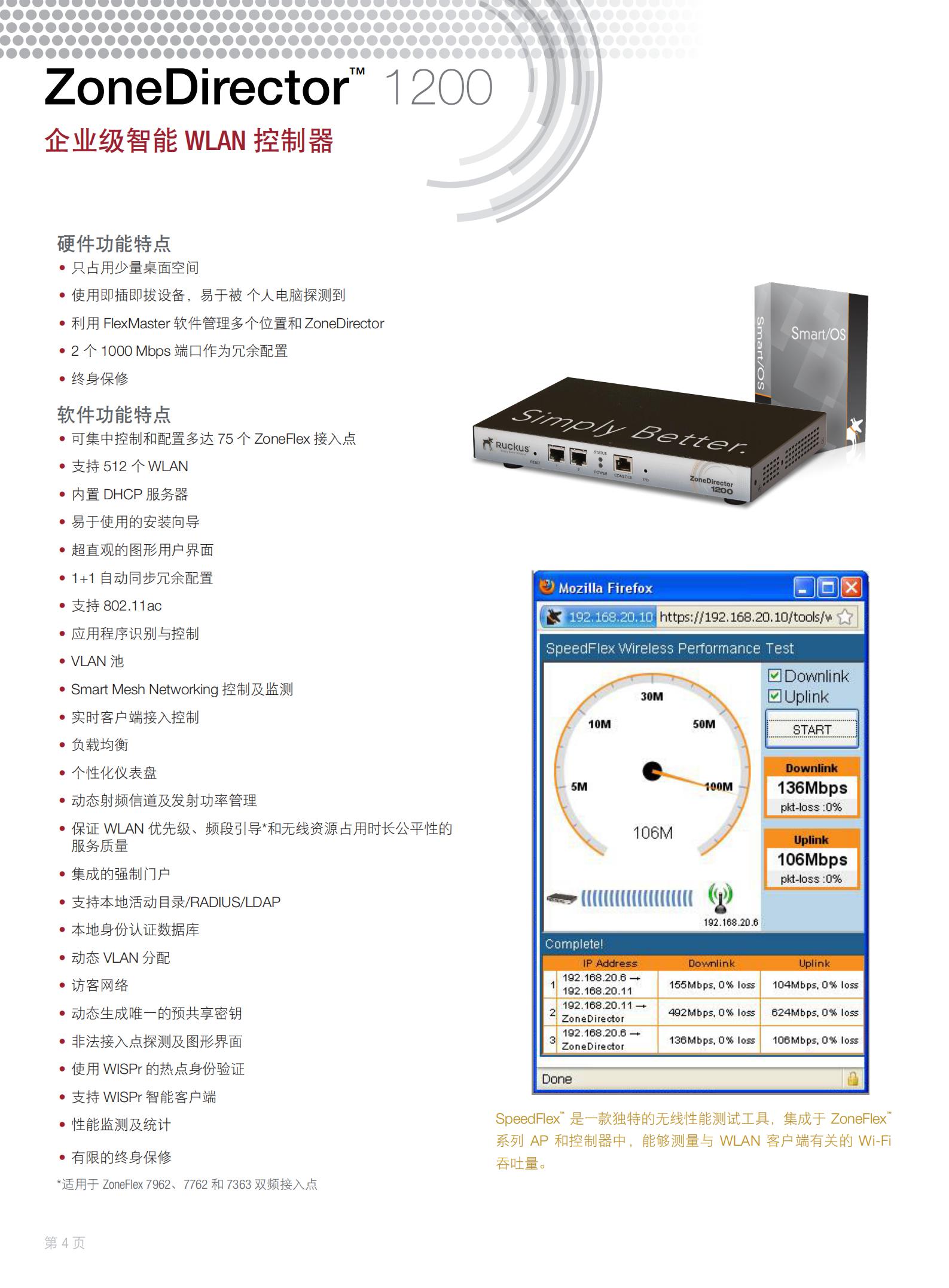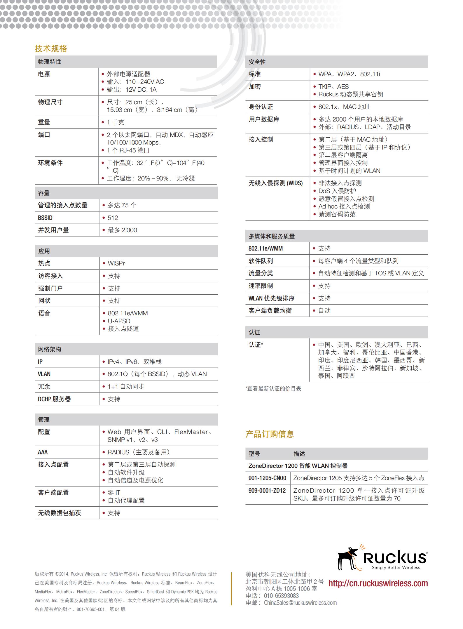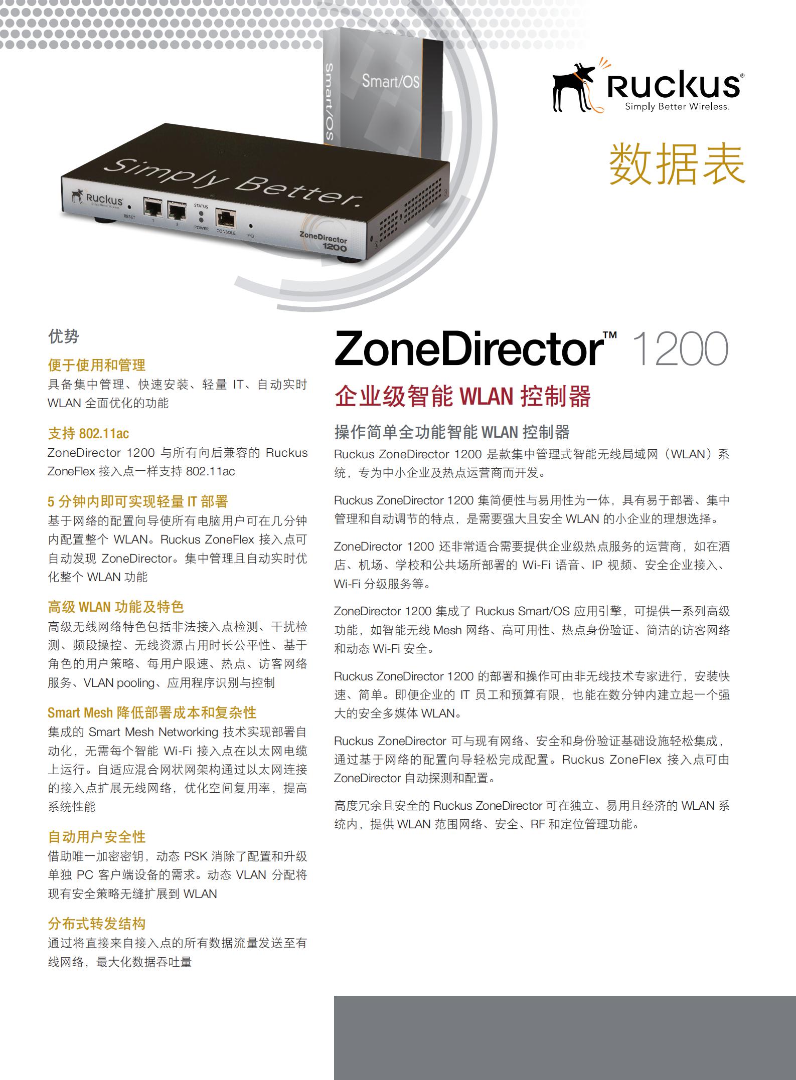 Ruckus 無線 ZoneDirector 1200 是 Ruckus 專門為中小型企業開發的集中托管式智能 WLAN 系統。