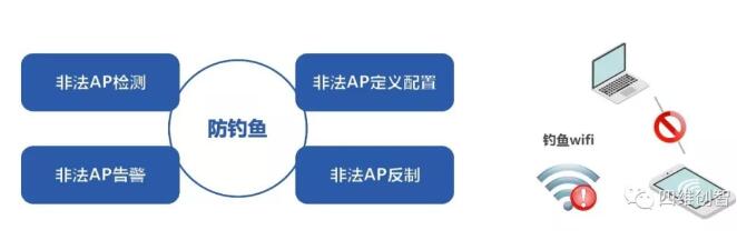 目前,WLAN的安全從單一的物理層安全全延伸到設(shè)備安全,用戶(hù)接入安全、網(wǎng)絡(luò)層安全、管理安全等多個(gè)層面上,四維創(chuàng)智以醫(yī)療的實(shí)際需求為導(dǎo)向,形成了以“WiFi資產(chǎn)管理、威脅檢測(cè)、攻擊識(shí)別阻斷、無(wú)線(xiàn)安全態(tài)勢(shì)感知”為一體的解決方案。
