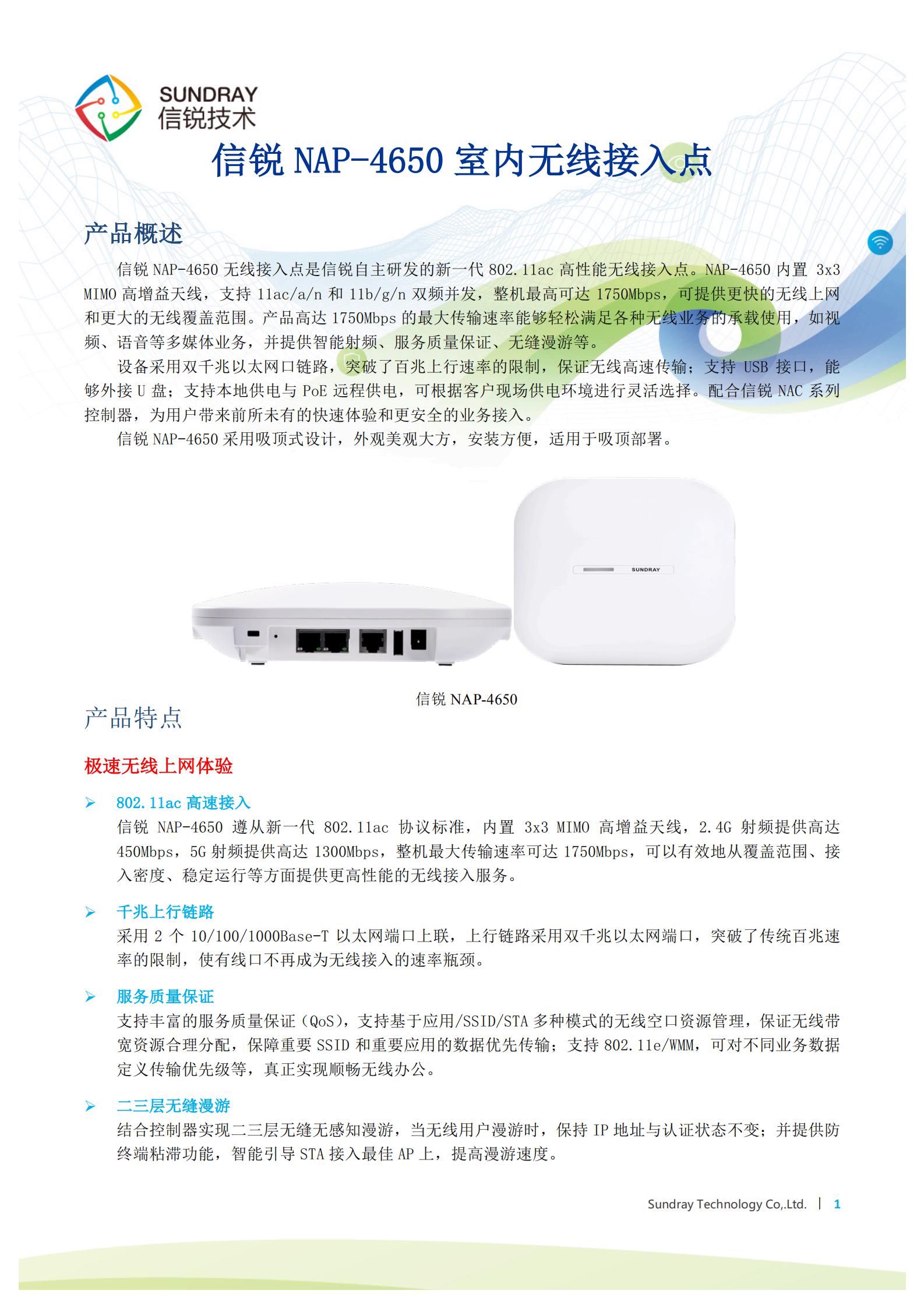 NAP-4650無線AP是信銳技術(shù)自主研發(fā)的新一代802.11ac高性能室內(nèi)無線接入點。