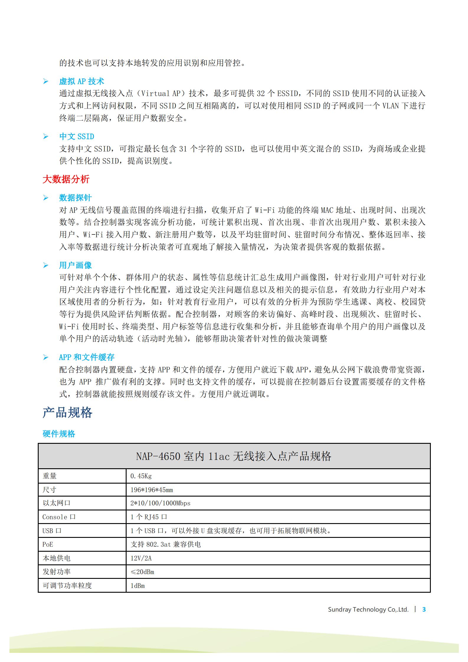 NAP-4650室內(nèi)無線AP內(nèi)置 3x3 MIMO高增益天線,支持11ac/a/n和11b/g/n雙頻并發(fā),整機較高可達1750Mbps,可提供更快的無線上網(wǎng)和更大的無線覆蓋范圍。產(chǎn)品高達1750Mbps的較大傳輸速率能夠輕松滿足各種無線業(yè)務(wù)的承載使用,如視頻、語音等多媒體業(yè)務(wù),并提供智能射頻、服務(wù)質(zhì)量保證、無縫漫游等.