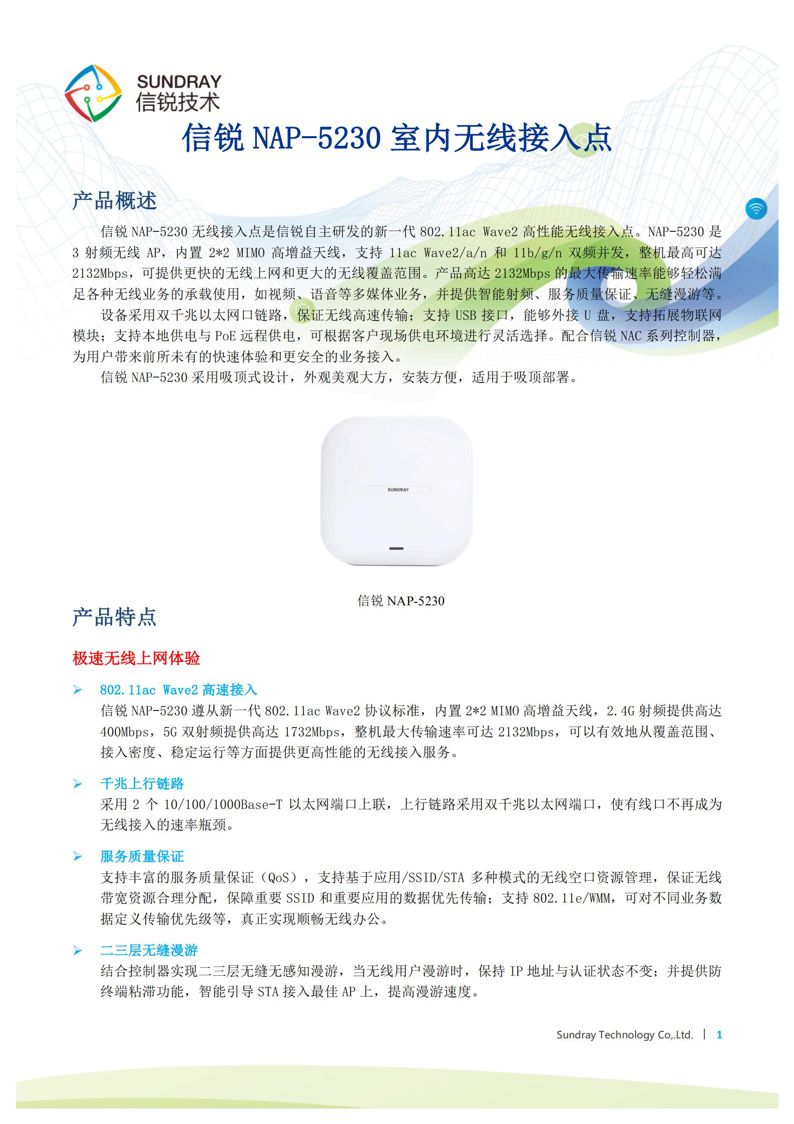 NAP-5230無(wú)線AP是信銳技術(shù)自主研發(fā)的新一代高性能802.11ac wave2室內(nèi)無(wú)線接入點(diǎn)。