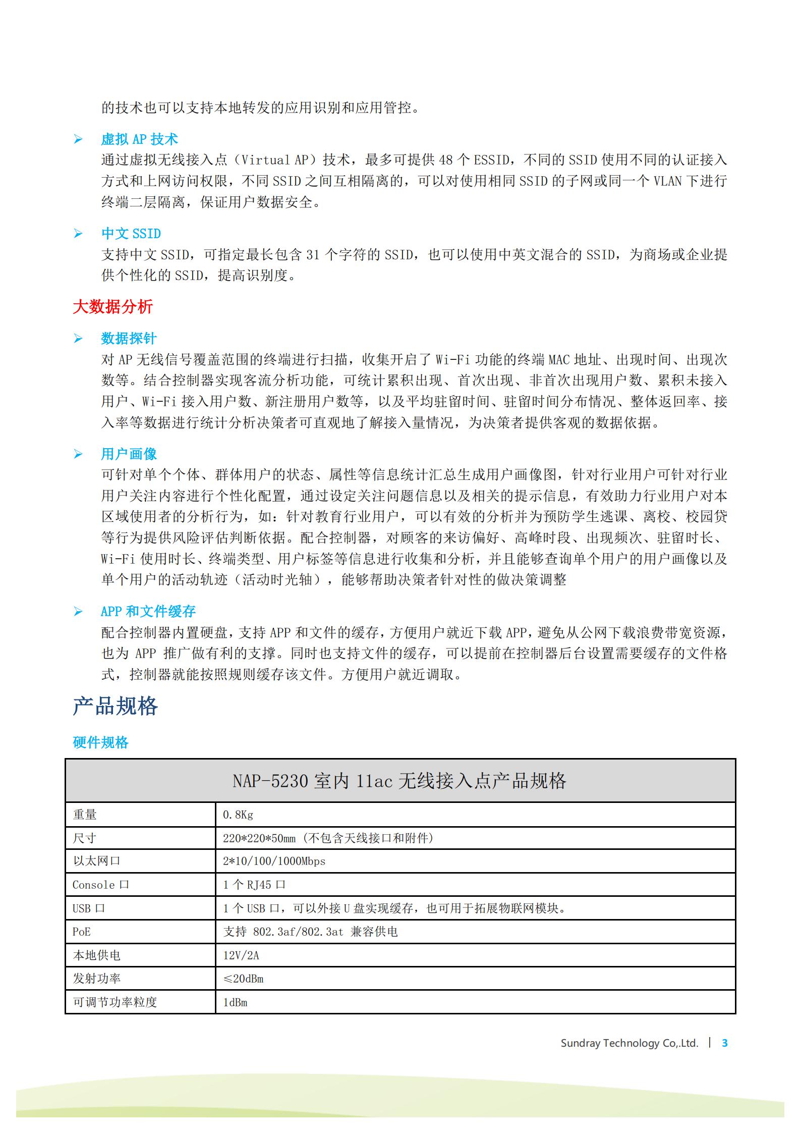 NAP-5230室內(nèi)無(wú)線AP是3射頻無(wú)線AP,內(nèi)置2*2 MIMO高增益天線,支持11ac wave2/a/n和11b/g/n雙頻并發(fā),整機(jī)較高可達(dá)2132Mbps,可提供更快的無(wú)線上網(wǎng)和更大的無(wú)線覆蓋范圍。產(chǎn)品高達(dá)2132Mbps的較大傳輸速率能夠輕松滿足各種無(wú)線業(yè)務(wù)的承載使用,如視頻、語(yǔ)音等多媒體業(yè)務(wù),并提供智能射頻、服務(wù)質(zhì)量保證、無(wú)縫漫游等。