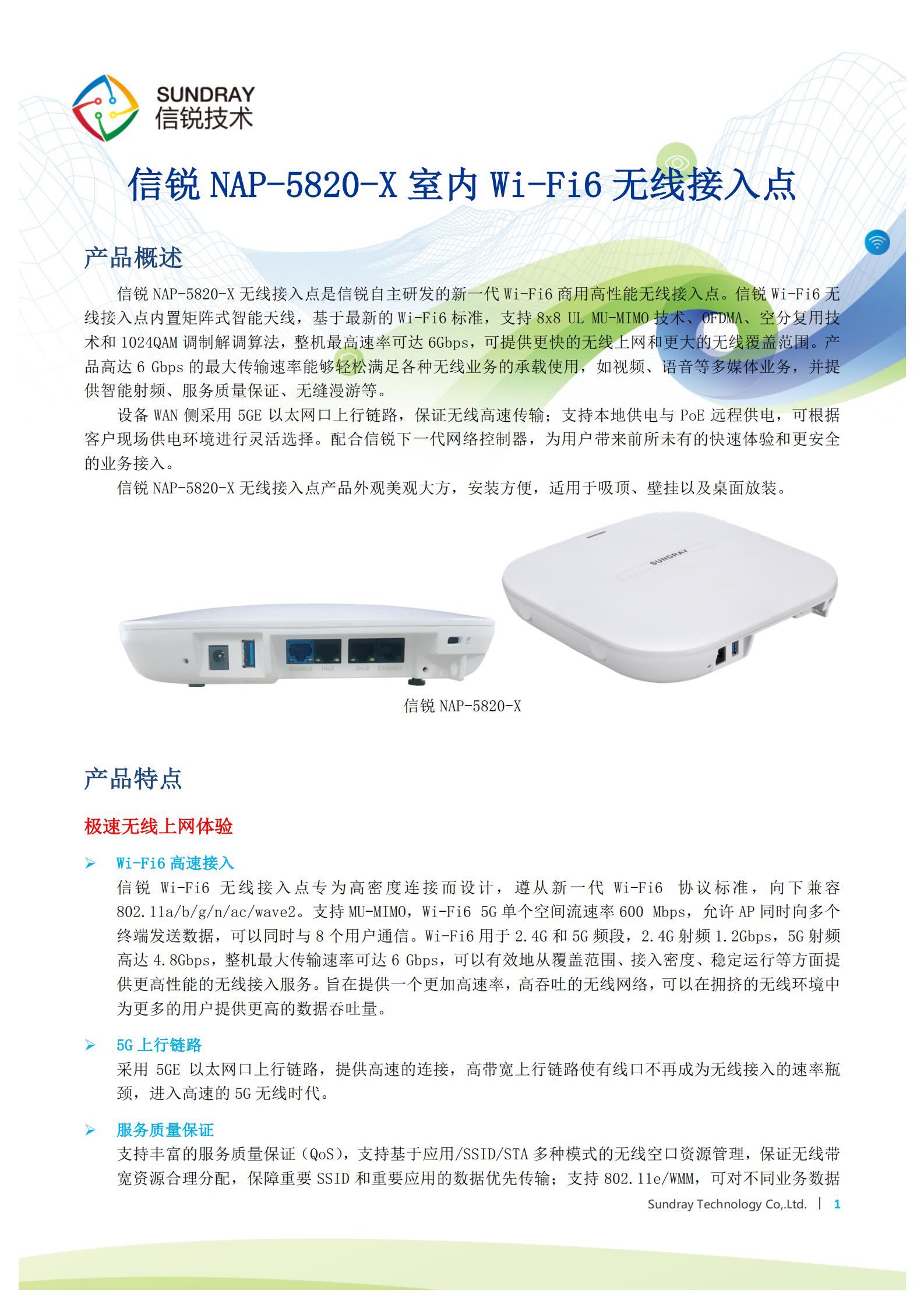 NAP-5820-X無線AP是信銳技術(shù)自主研發(fā)的新一代Wi-Fi 6商用高性能室內(nèi)無線接入點。